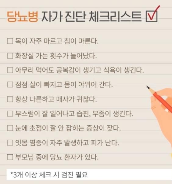 1) 당뇨병 자가진단 체크리스트 (대한당뇨병학회, 2016)