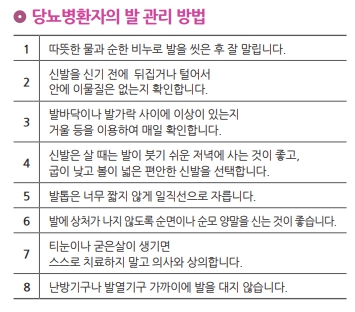 ※ 당뇨병 발 관리 방법 참고 (질병관리청)