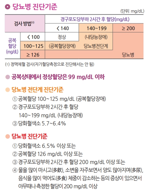 당뇨병 진단 기준은 아래와 같은 참고하시기 바랍니다.